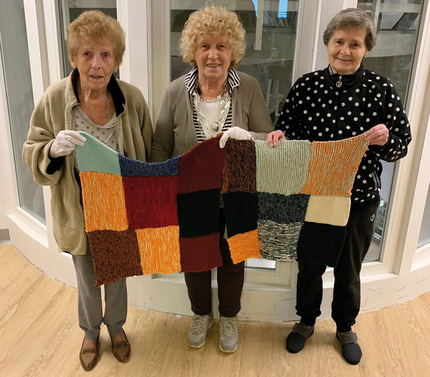 “Per oltre un mese, le nostre donne si sono ritrovate fra loro, due o tre volte alla settimana, per lavorare a maglia o ad uncinetto – spiega la terapista occupazionale Sara Alborghetti – E hanno fatto delle belle cose, alcuni “quadrotti” che poi sono stati consegnati ai volontari della Biblioteca Comunale, per essere poi assemblati e portati in Piazza Vecchia, a Bergamo. Anche nel nostro piccolo, quindi, ci siamo dati da fare; ma, al di là dell’obiettivo solidale, da tutti ritenuto di estrema importanza, quello che per noi si è rivelato strategico è stata la creazione di momenti di socialità e di condivisione fra anziani che non credevano più di avere certe abilità: invece, hanno sferruzzato, hanno ripreso in mano i ferri e l’uncinetto; hanno dimostrato, in maniera concreta, che possiedono ancora capacità residue, che possono essere ancora spese in attività comuni”.