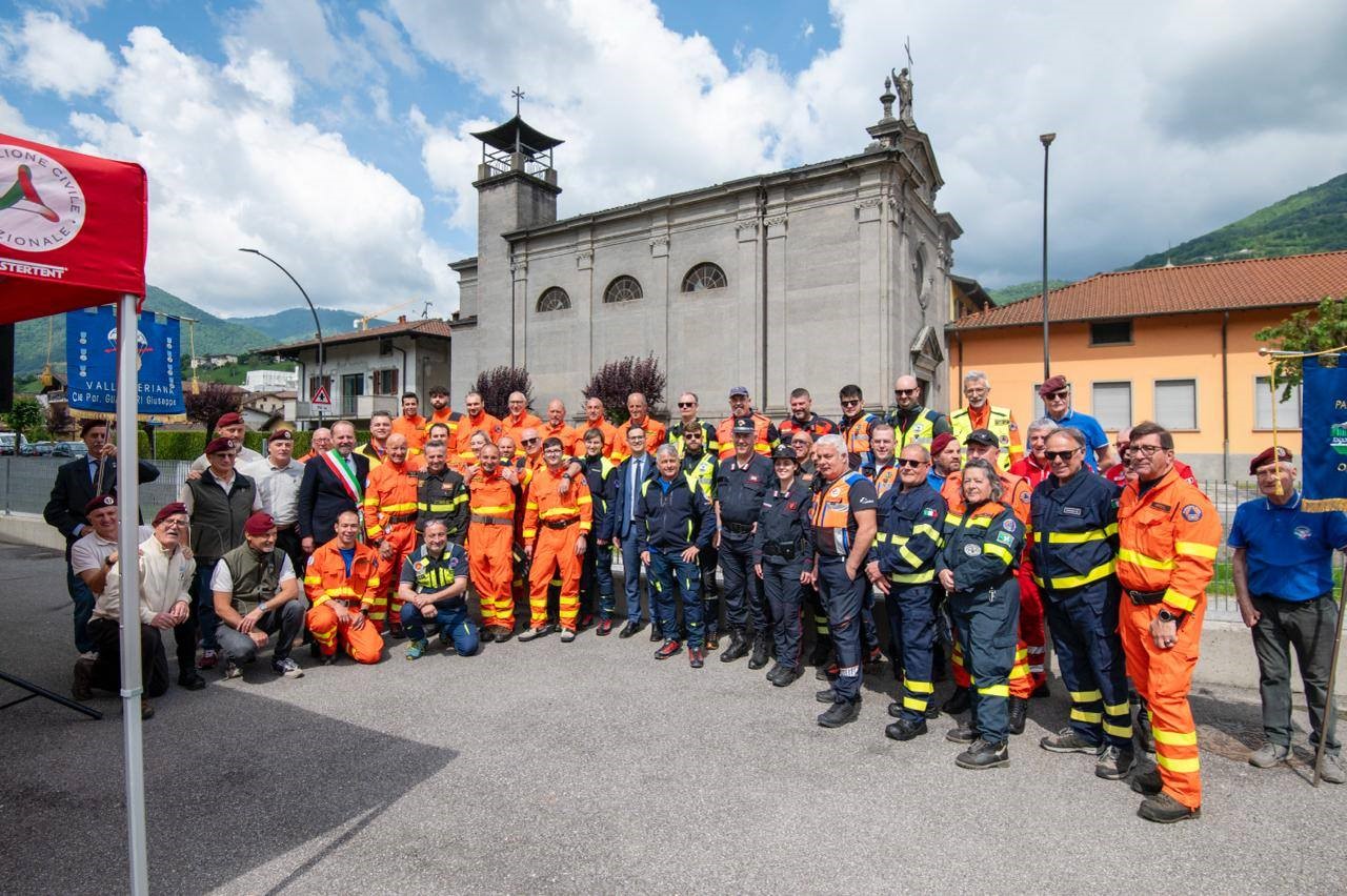 Tempo di festeggiamenti per il Corpo Volontari Protezione Civile AIB di Vertova. Ricorre quest’anno, infatti, i 50 anni di fondazione del sodalizio, nato dapprima come nucleo Anti Incendio Boschivo e dal 2000 come Protezione Civile. Per l’occasione, sabato 24 maggio scorso, l’amministrazione comunale ha chiamato a raccolta la comunità per un momento celebrativo: dapprima, la S.Messa, quindi, davanti alla nuova sede della Protezione Civile, ricavata nell’ex-deposito della ferrovia della Valle Seriana, la consegna di una targa-ricordo, “a riconoscenza dell’impegno profuso, del costante sostegno e del supporto a favore della popolazione”. Oltre al sindaco Riccardo Cagnoni e alla Giunta Comunale, presente il presidente della Protezione Civile di Vertova Ferruccio Bettoschi, e membri di locali associazioni di volontariato e d’arma.