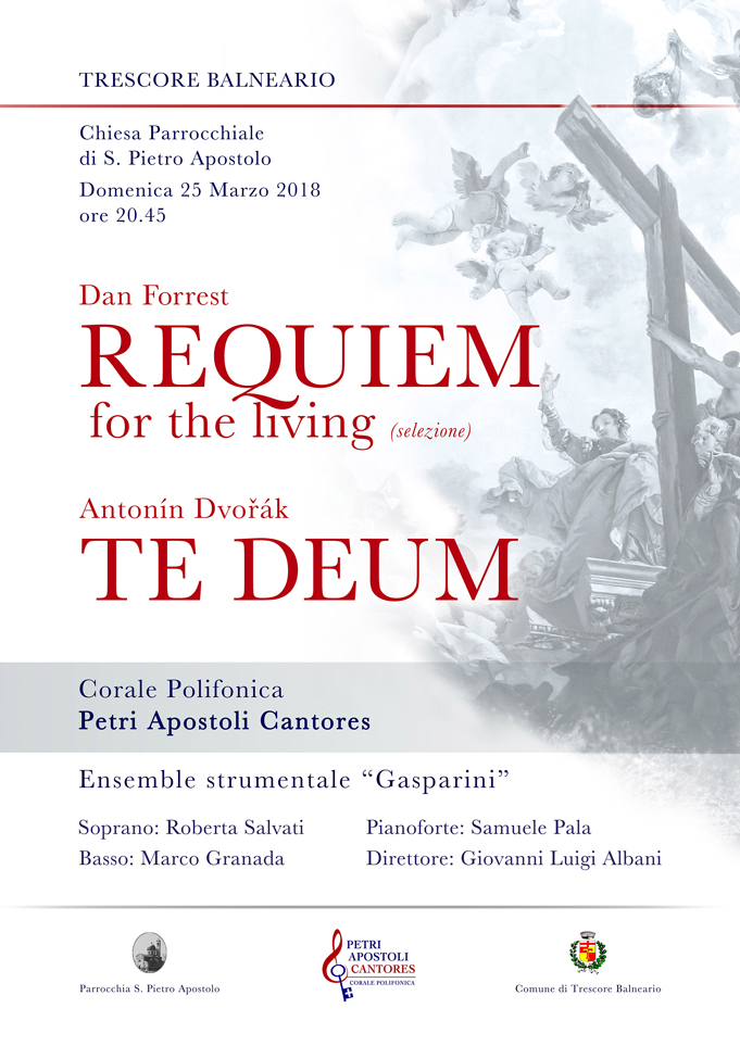 La Corale Petri Apostoli Cantores è pronta, pronta ad aprire l’inizio della Settimana Santa con un programma all’insegna della musica Sacra vicina ai giorni nostri. Il Direttore Giovanni Luigi Albani presenterà una selezione del Requiem for the Living di Dan Forrest, tradizionalmente per i defunti. I cinque movimenti del Requiem formano una narrazione tanto per i vivi, quanto per la loro stessa lotta con il dolore, come per i morti. Il movimento di apertura imposta i tradizionali testi Introit e Kyrie, i motivi del riposo e della misericordia, usando elaborazioni sempre crescenti su un semplice motivo discendente a tre note. Il secondo movimento, invece del tradizionale Dies Irae, stabilisce testi scritturali che parlano del tumulto e del dolore che affronta l’umanità, per andare verso una richiesta di liberazione e pace con l’Agnus Dei. La Corale chiuderà il concerto con un inno a Dio “Te Deum di Dvorak”. Vogliamo provare a fermare per un attimo il tempo, fermare il pensiero dei problemi quotidiani, trasportando la mente al vero senso della vita. I nostri sacrifici saranno ripagati con la vostra presenza e con la soddisfazione di avervi toccato il cuore. Vi aspettiamo!