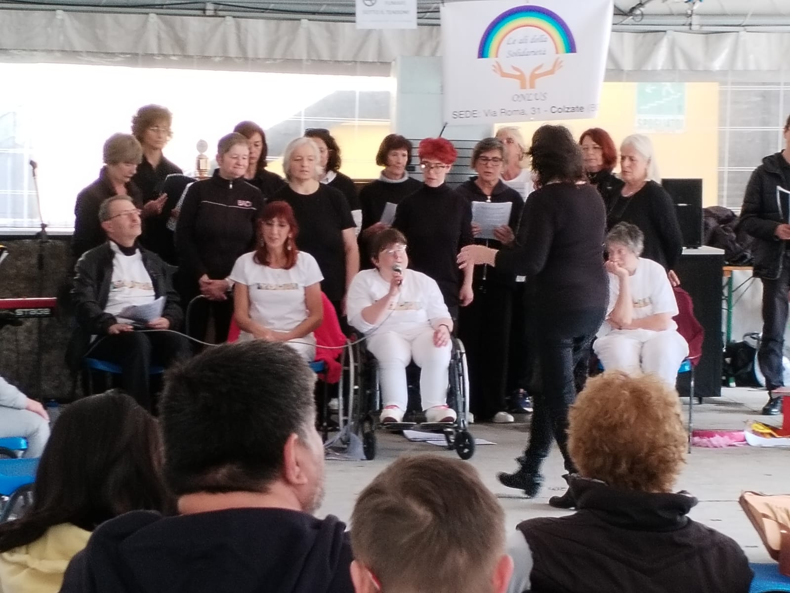 E’ stata poi Bruna, maestra di yoga, a descrivere il proprio corso realizzato grazie alla collaborazione con l’Associazione Yoga ASD Solo-Luna e con il patrocinio del Comune di Colzate; è un gruppo affiatato, attivo ormai da 10 anni, che, con un percorso di esperienze ludiche, punta non solo ad un benessere individuale ma anche alla sintonia di gruppo. I tagazzi hanno proposto uno spettacolo teatrale che ha voluto essere una riflessione sul tempo presente, sul saper vivere l’attimo attuale; alla realizzazione ha partecipato anche il coro Liberi Suoni di Nembro diretto dal Maestro Donatella Moioli a cui appartengono alcuni dei ragazzi disabili ma che è composto anche da persone normodotate.
