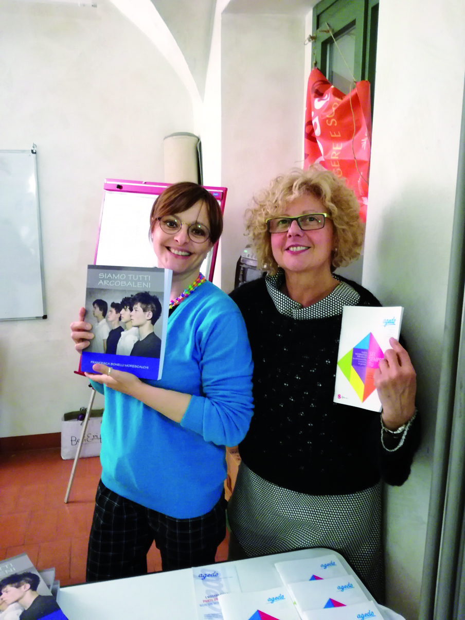 Giovedì 4 aprile alle ore 20.15 una platea interessata e commossa ha assistito alla presentazione del nuovo romanzo di Francesca Bonelli Morescalchi, diplomata in interpretariato inglese, in medicina naturale e psicosomatica, laureanda in psicologia. Franca Morelli della Libreria Fantasia di Bergamo ha condotto l’intervista. Protagonisti del romanzo “Siamo tutti arcobaleni” sono tre adolescenti di 16 anni, raccontata da uno di loro, Ghigo. Un linguaggio aderente alla realtà ma non ostentato bensì autentico, un uso sapiente del dialoghi e del comico ne fanno un libro che si presta facilmente a stimolare letture e discussioni sui temi della difficoltà del crescere, della ricerca dell’identità, sul bullismo, sulla tematica LGBT. La serata è stata occasione di presentazione delle attività di Agedo (Associazione Genitori di Omosessuali) che in Val Seriana sta compiendo i suoi primi passi.