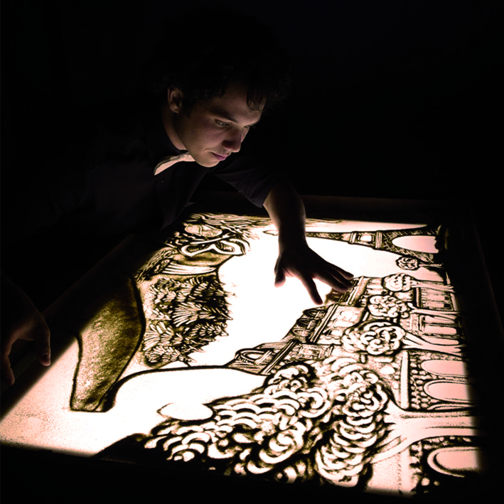 Disegni reali e fantasiosi, paesaggi, personaggi, che creano stupore ed emozione. Sono le straordinarie performance artistiche realizzate con la tecnica della “Sand Art”, ossia l’arte di creare disegni su di un sottile strato di sabbia predisposto su un tavolo luminoso. Proprio questa particolare tecnica artistica costituisce la base fondante delle opere della “Compagnia Sabbie Luminose Andrea De Simone” di Albino, un team composto da giovani fra i 19 e i 23 anni, tutti formatisi nei campi della comunicazione e dello spettacolo, che si occupa di realizzare progetti culturali e spettacoli teatrali proprio con l’arte del “disegno su sabbia”.