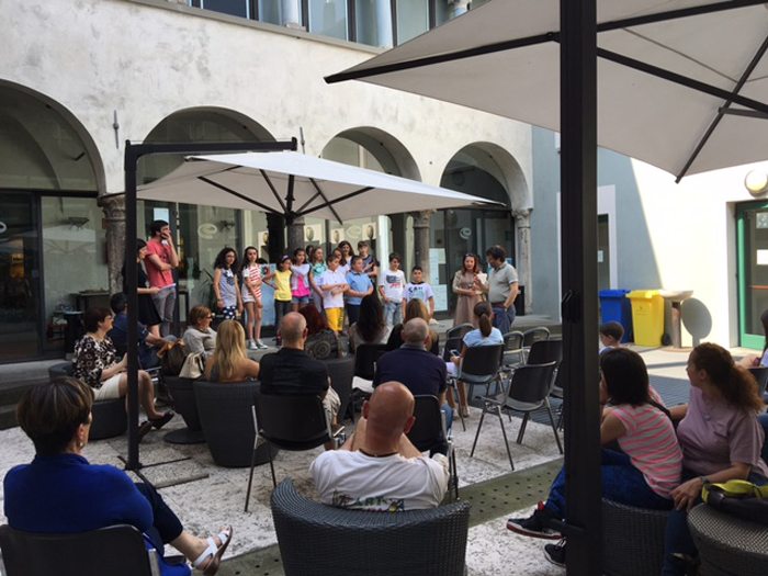 Festattiva è tata ospitata nei locali della biblioteca e per l’occasione lo spazio adiacente il cortiletto interno è stato allestito con i lavori dei ragazzi.