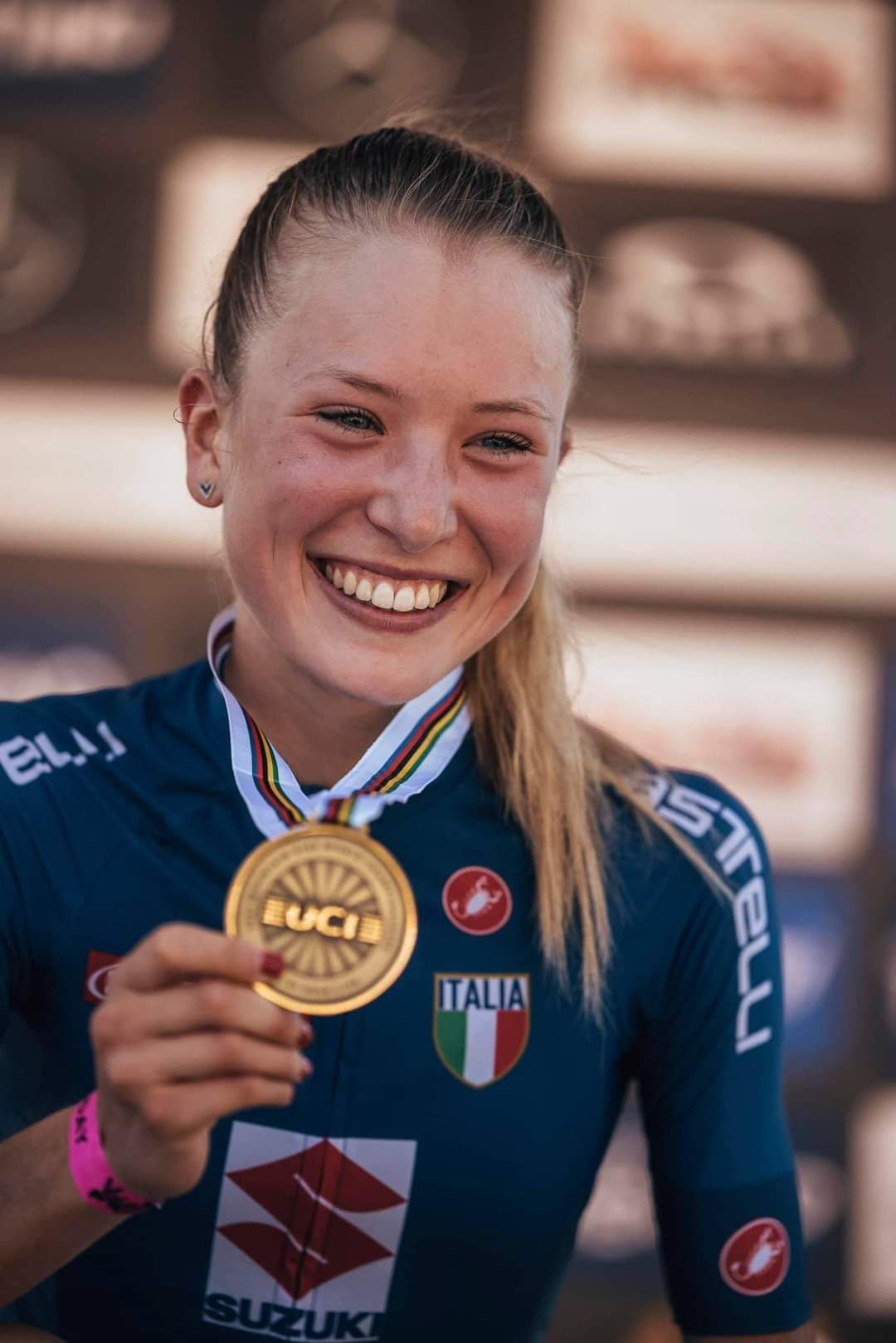 E’ una delle piacevoli sorprese della stagione ciclistica 2021. Ha dominato in Italia con la conquista del titolo tricolore juniores cross country e fatto incetta di successi agli Internazionali d’Italia. Non contenta, ha conquistato il titolo europeo Team Relay (staffetta mista), il titolo di vicecampionessa europea e il terzo posto ai campionati mondiali. Un’atleta dalla buona stoffa, dalle grandi potenzialità, che può ambire ad un futuro sportivo più che roseo.