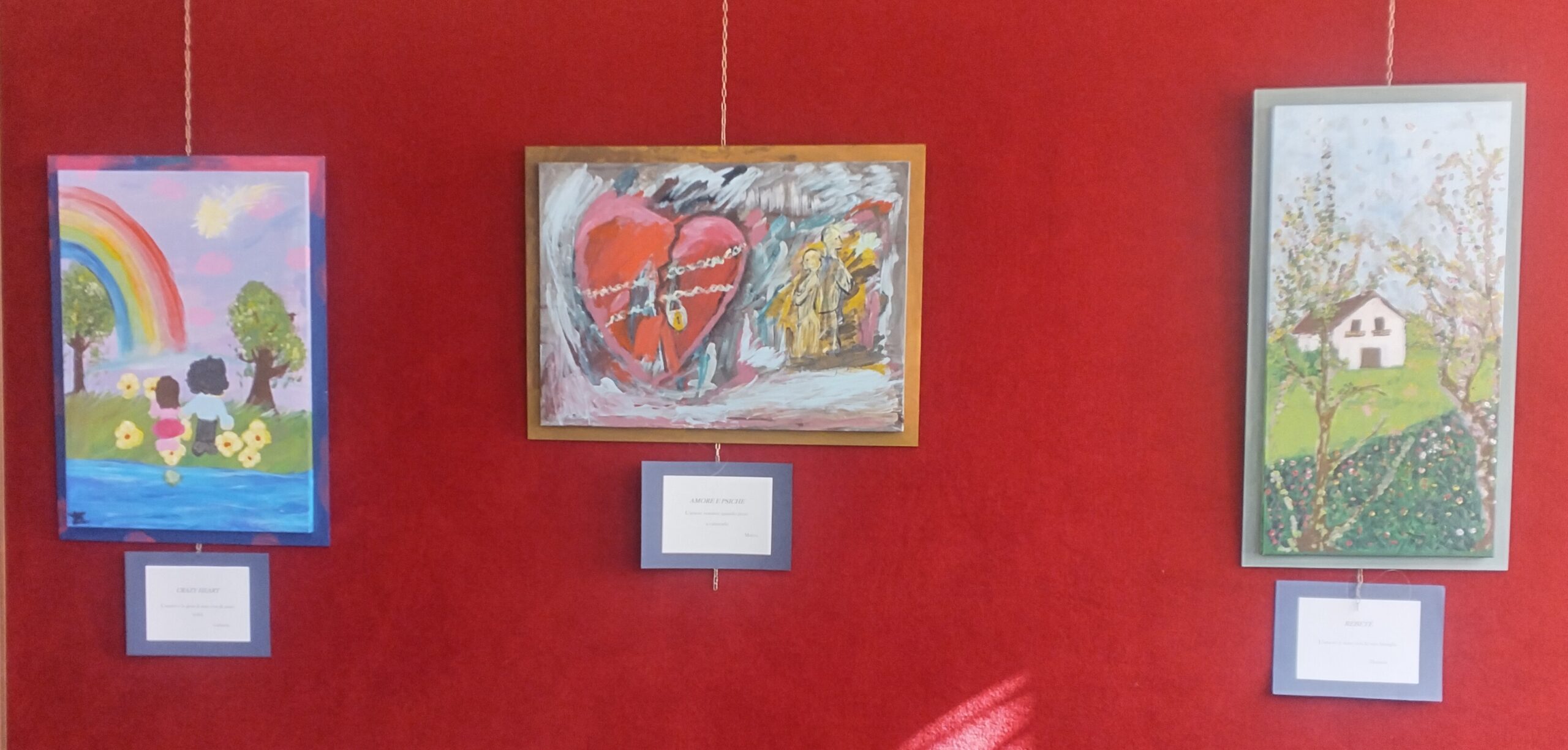 Incentrata sull’ amore che spinge al mutare è stata pure la mostra allestita al termine del laboratorio di pittura coordinato da Monica Viani, Maestra d’arte, che si è avvalsa della collaborazione di Tiberio Longhi. L’attività, composta da 12 lezioni che hanno preso il via a metà marzo, ha coinvolto 13 ragazzi; non trattandosi di un corso di disegno ma bensì di pittura, essi non sono gli autori delle tele esposte ma hanno però scelto le immagini da rappresentare, la forma del quadro e la cornice in cui inserirlo, i colori da utilizzare che hanno poi steso nonché il messaggio da veicolare attraverso le proprie opere.