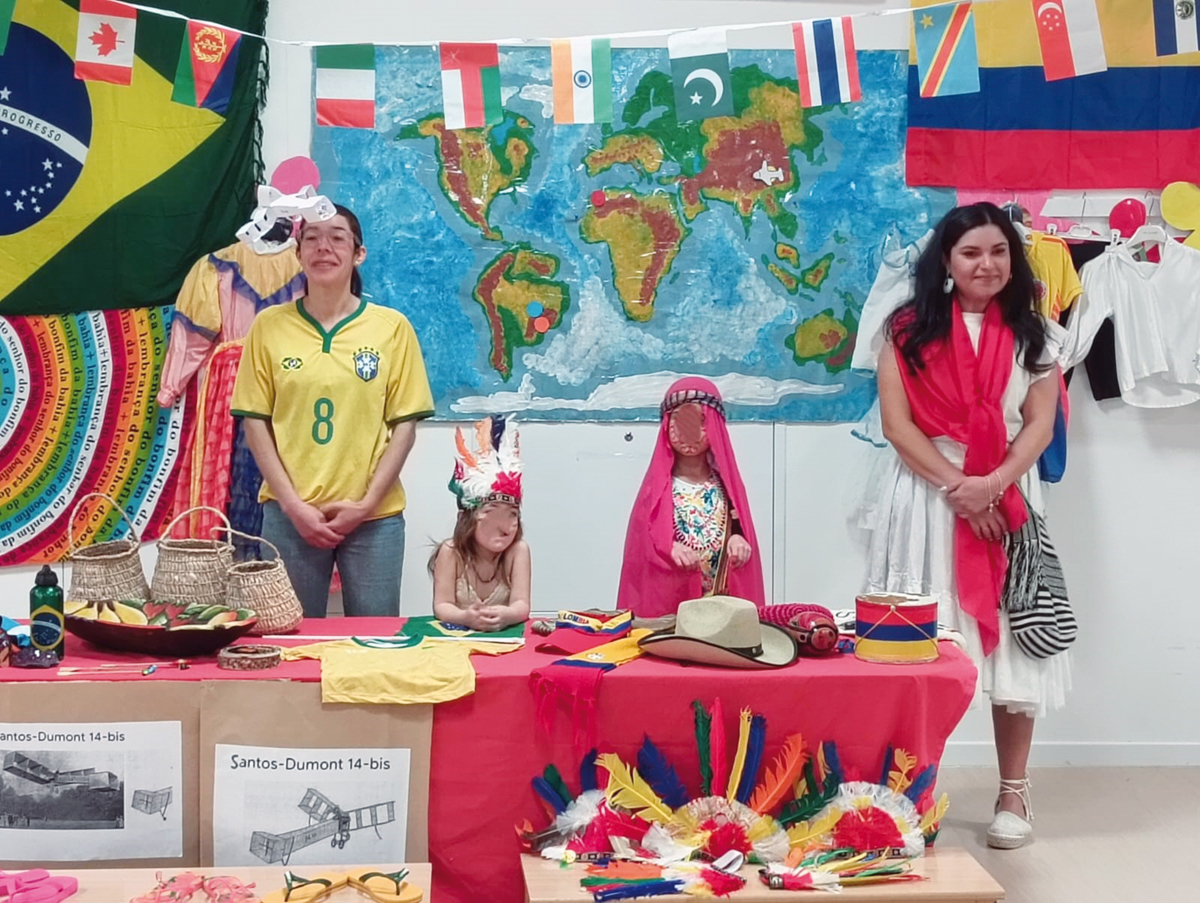 “Abbiamo infine incontrato una mamma del Brasile e una della Colombia che hanno collaborato insieme per presentarci tutta l’allegria e i colori dei loro paesi – continuano le maestre – La mamma brasiliana ci ha mostrato, in particolare, alcuni quadri dai colori sgargianti di un bravissimo pittore del Brasile e il modello di un aeroplano che è stato inventato da un famoso ingegnere brasiliano, Alberto Santos Dumont. La mamma della Colombia, invece, ci ha mostrato con quanta cura intrecciano fili di raffia per creare cesti per raccogliere la frutta, una vera arte anche questa. Ci ha fatto indossare le borse tipiche fatte a mano nel suo paese e i vestiti coloratissimi, ricamati a mano, che le donne colombiane usano nelle feste tradizionali. Abbiamo visto i bambini partecipare con entusiasmo a questo progetto, hanno fatto molte domande anche in sezione e ogni anno abbiamo la conferma che l’incontro con l’altro è una ricchezza che va valorizzata”.